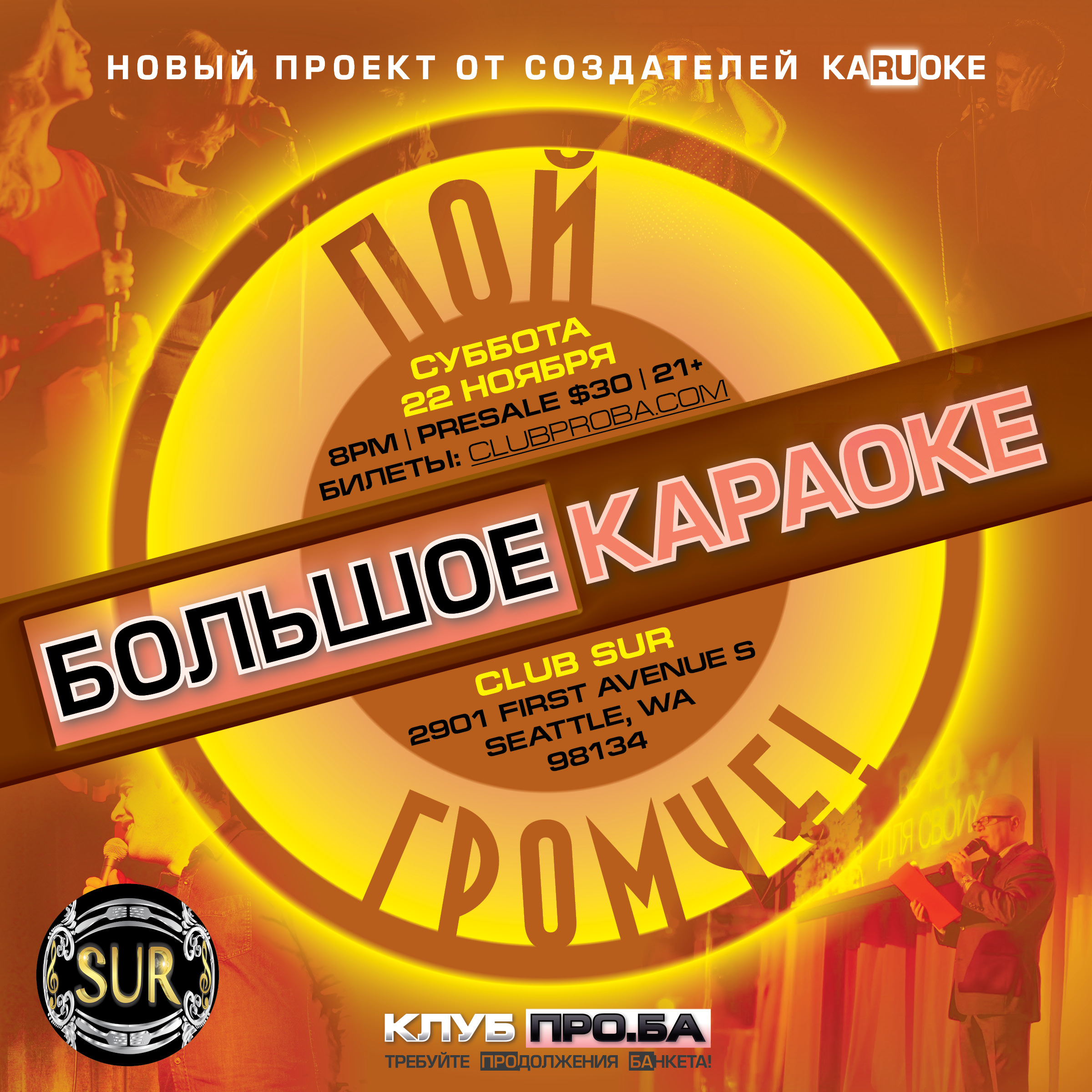 Saturday, November 22, 2025 — Большое Караоке - Пой Громче! - Club SUR - 2901 1st Ave S, Seattle, WA 98134