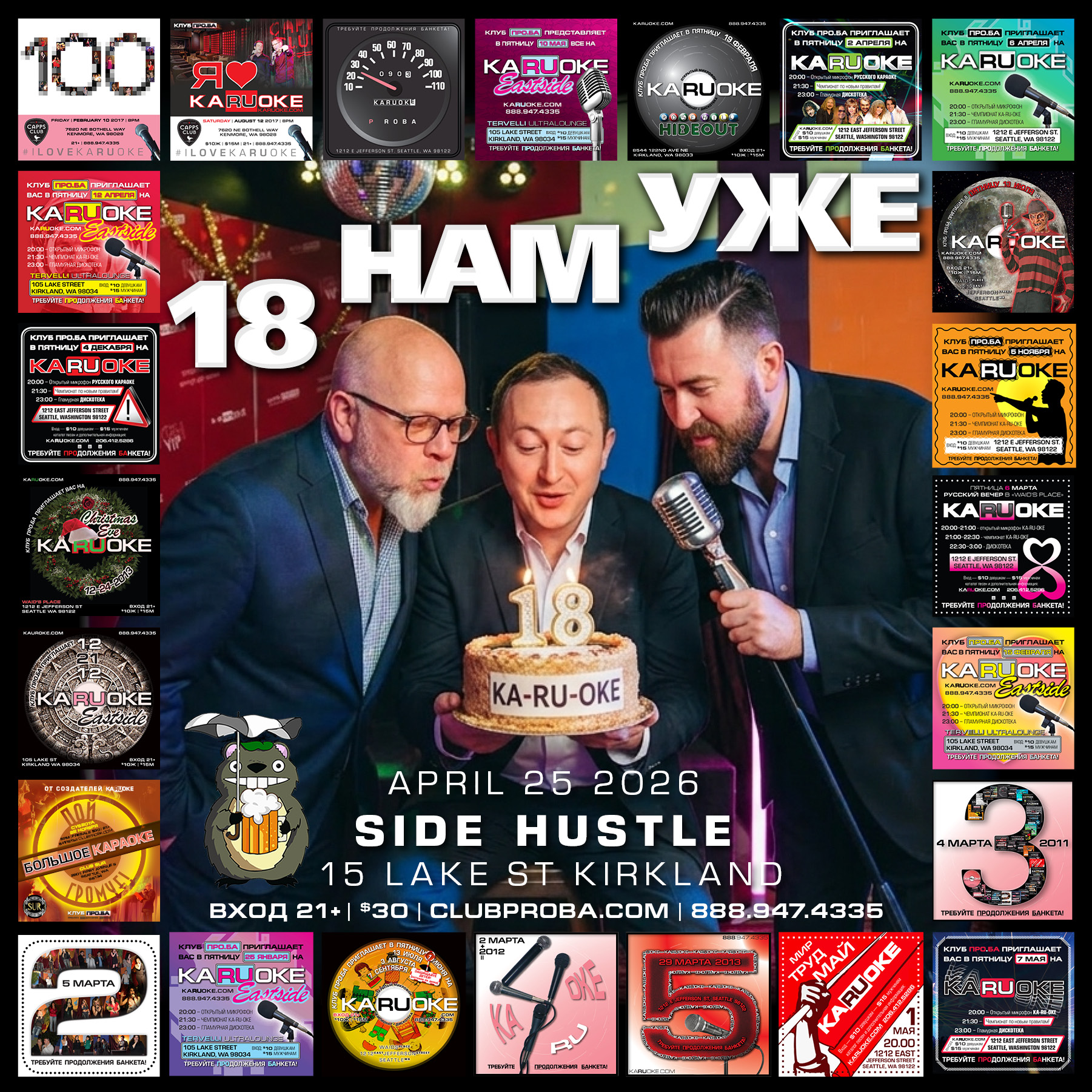 Saturday, April 25, 2026 — KA-RU-OKE — 18 Нам Уже! — Side Hustle Taproom & Kitchen — 15 Lake Street #201, Kirkland WA 98033